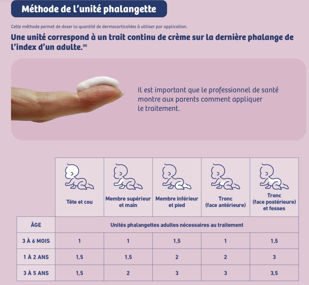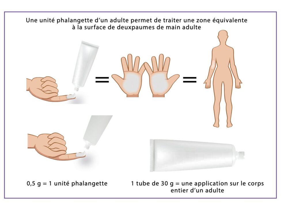 • 1 seule fois par jour jusqu’à guérison, sans décroissance, relais avec un émollient ++